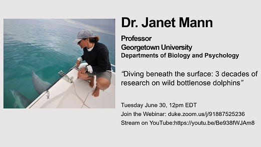 Next week (6/30) we we'll hear from Dr. Janet Mann!