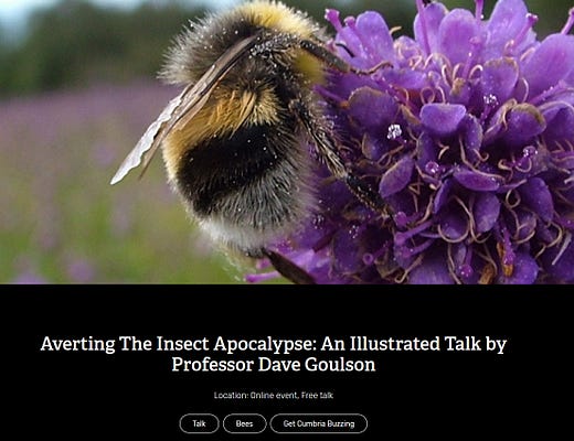 Webinar: Reverting the Insect Apocalypse: Wednesday, 1st July, 7pm-8pm. Dave Goulson, leading national expert in bumblebee and pollinator ecology, will explain why insects are in decline and suggest how we should tackle this crisis. Book your free place: ow.ly/Kri450Abkh2