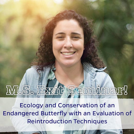 🦋Join us on MONDAY for an MS Exit Seminar by Sarah Steele Cabrera!