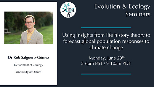This Monday Rob Salguero-Gómez (@Rob_SalGo) will be talking about climate change and life history theory!