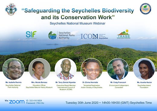 SAVE THE DATE ! 🌾 On Tuesday 30th June, Seychelles National Museums present the webinar "Safeguarding the Seychelles Biodiversity and its Conservation Work" with ICOM Seychelles. Don't miss it 🇸🇨