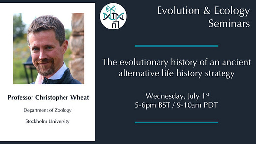 Wednesday, Chris Wheat (@ChrisWWheat) will be talking about the evolution of a fascinating alternative life history strategy in butterflies!