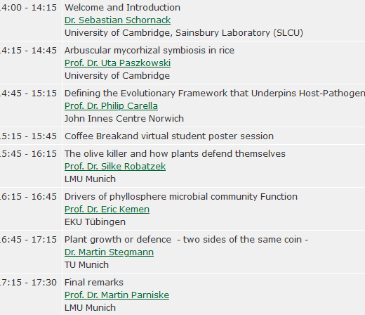 Pls.RT. Join our online symposium - The role of microbes in plant health: Emerging topics - 2 October, 2020; 2-5:30pm (GMT+2) bio.lmu.de/aktuelles/symp… #PlantsCamLMU Speakers include Silke Robatzek, @CerealSymbiosis @Phil_Carella @EKemen @StegmannMartin @MParniske